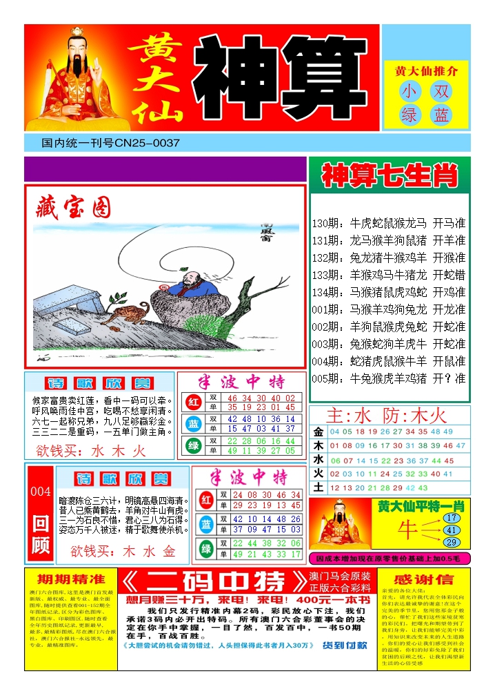 2026005黄大仙神算1