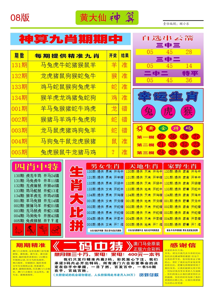 2026005黄大仙神算2