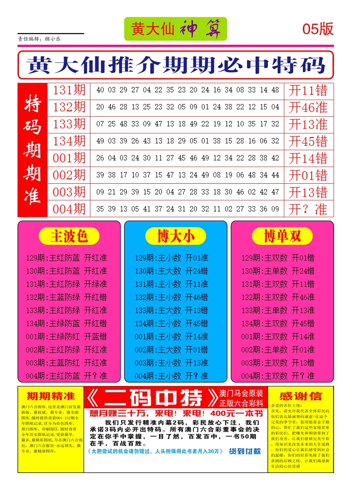 2026004黄大仙神算4