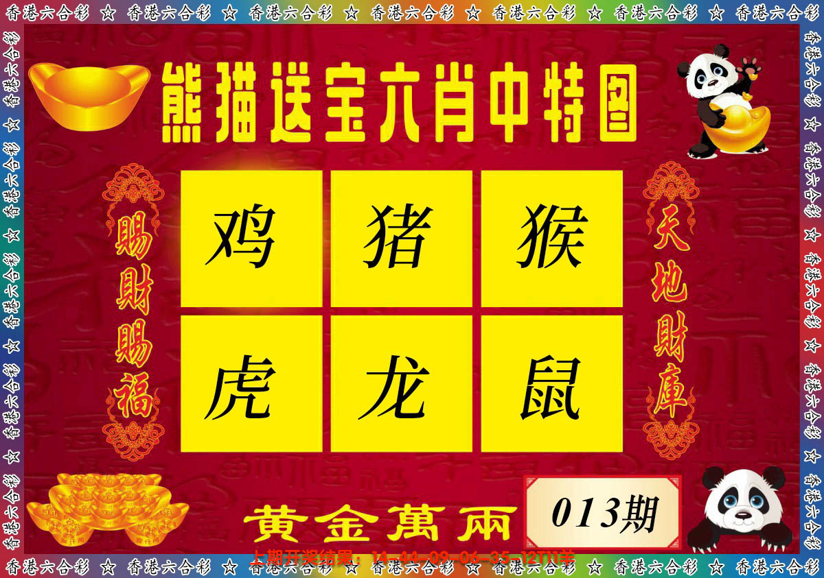 2026013熊猫送宝六肖中特图