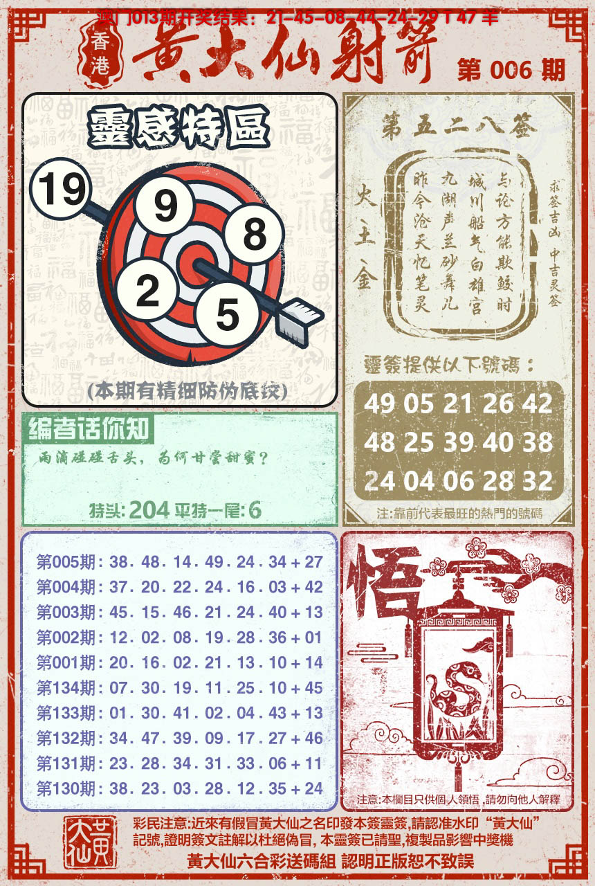 2026006黄大仙射箭