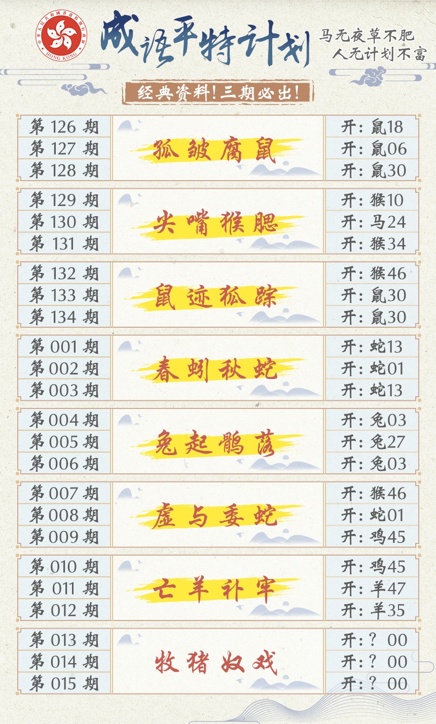 2026013成语平特计划