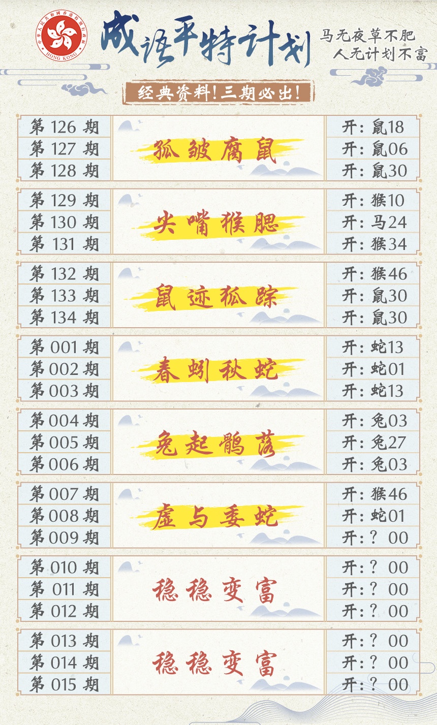 2026009成语平特计划