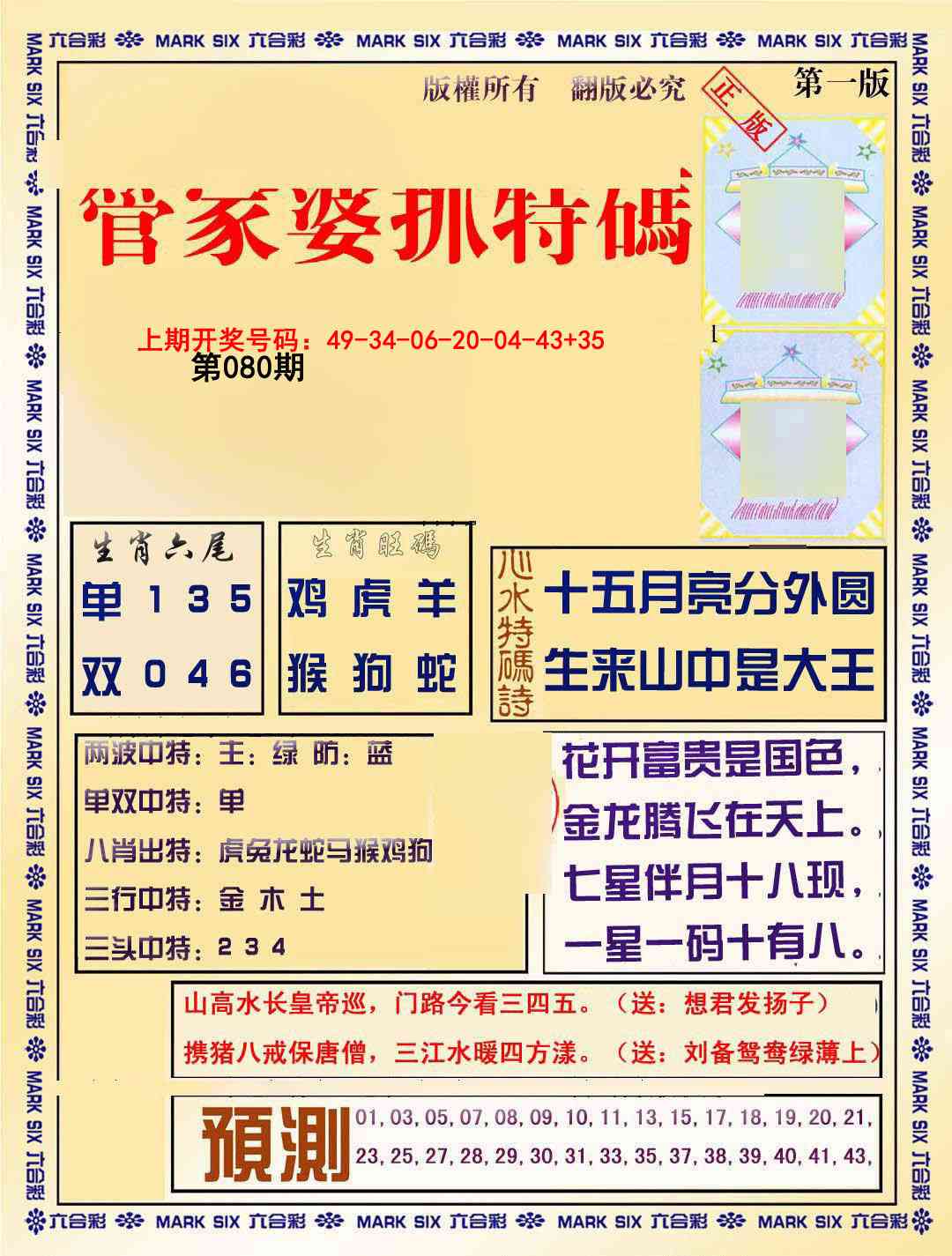 2026080管家婆抓特码A