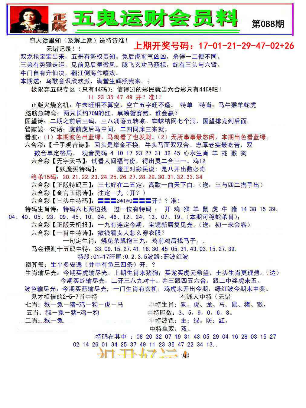 2026088五鬼运财会员料