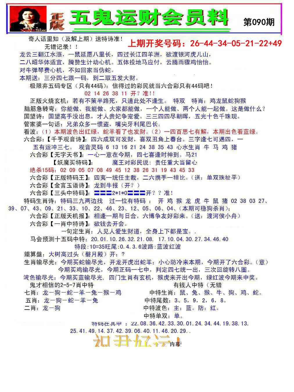 2026090五鬼运财会员料
