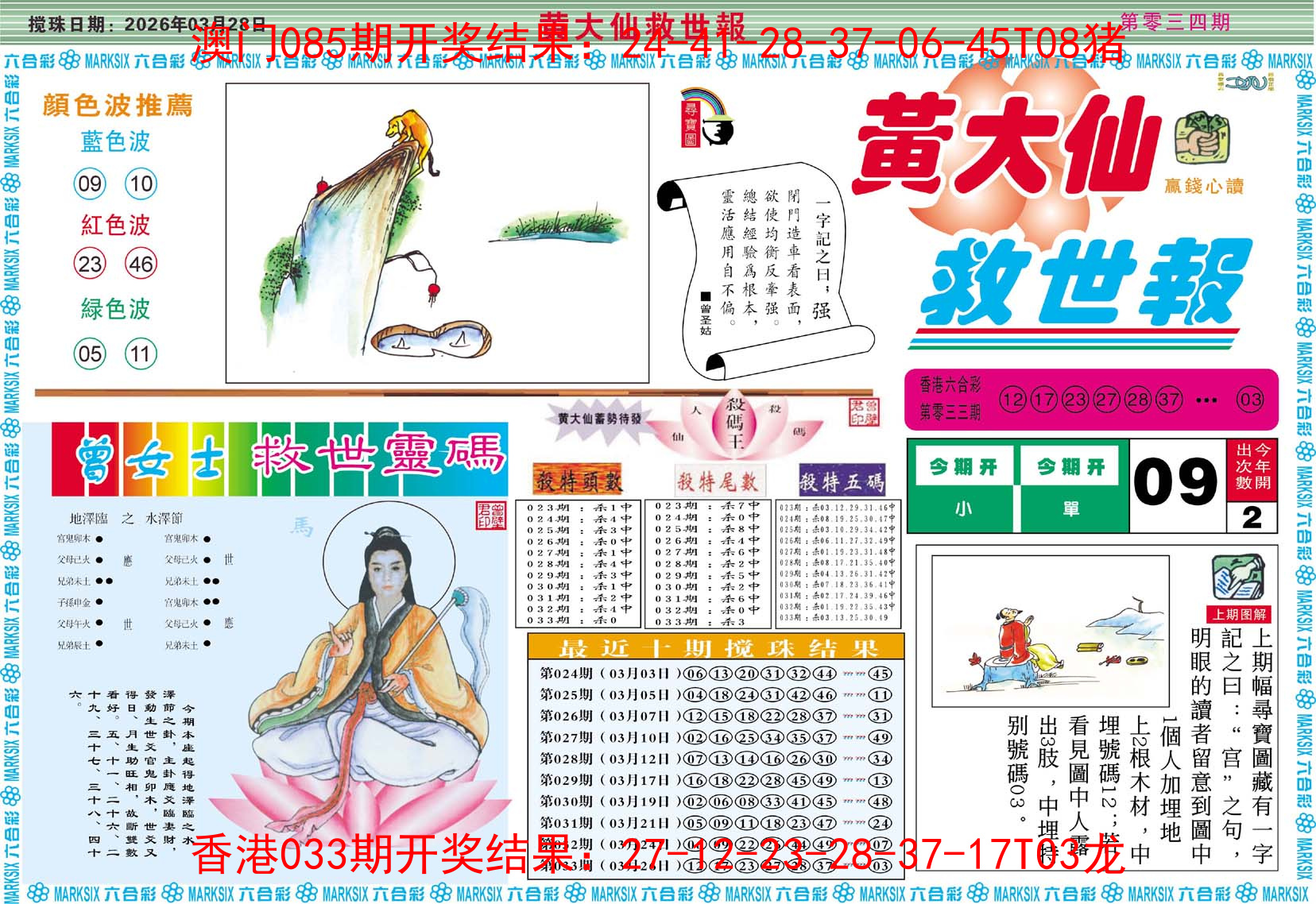 2026034黄大仙救世A